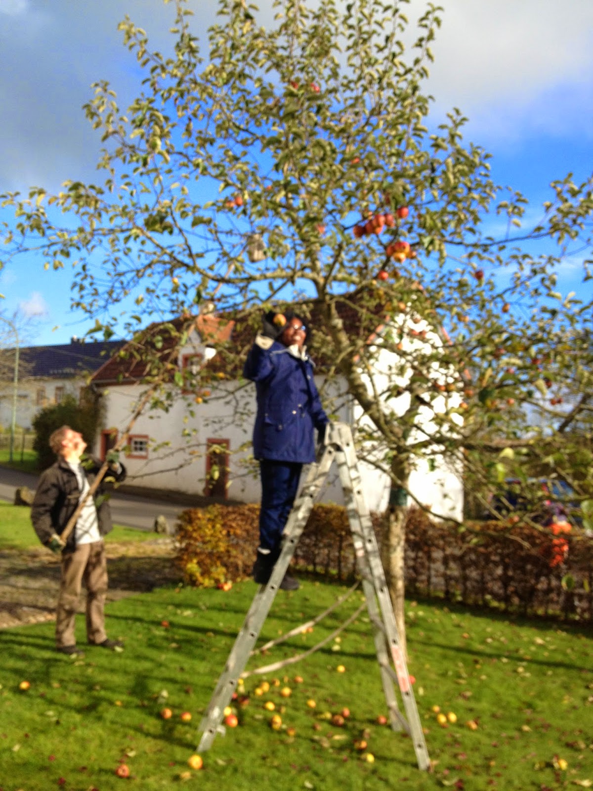 Patience hat sich schon immer gewünscht, einen Apfelbaum zu sehen. Das aber passend bei uns Äpfel dran hängen ist perfekt!